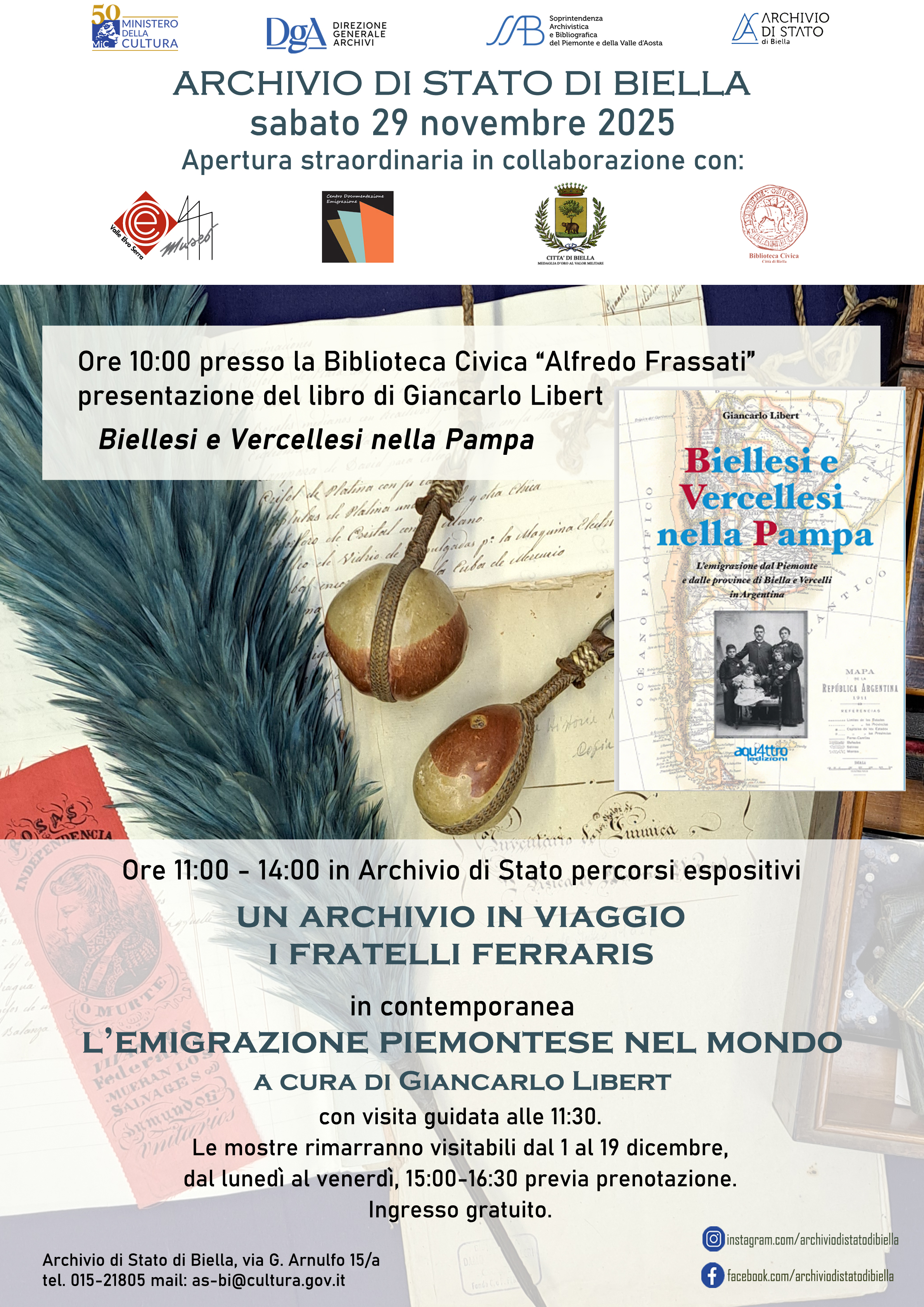 Questa giornata nasce dalla sinergia tra l'Associazione per l'Ecomuseo Valle Elvo e Serra, la Biblioteca Civica “Alfredo Frassati” e l'Archivio di Stato di Biella: realtà unite dall’impegno comune di preservare, studiare e condividere il patrimonio culturale del nostro territorio.